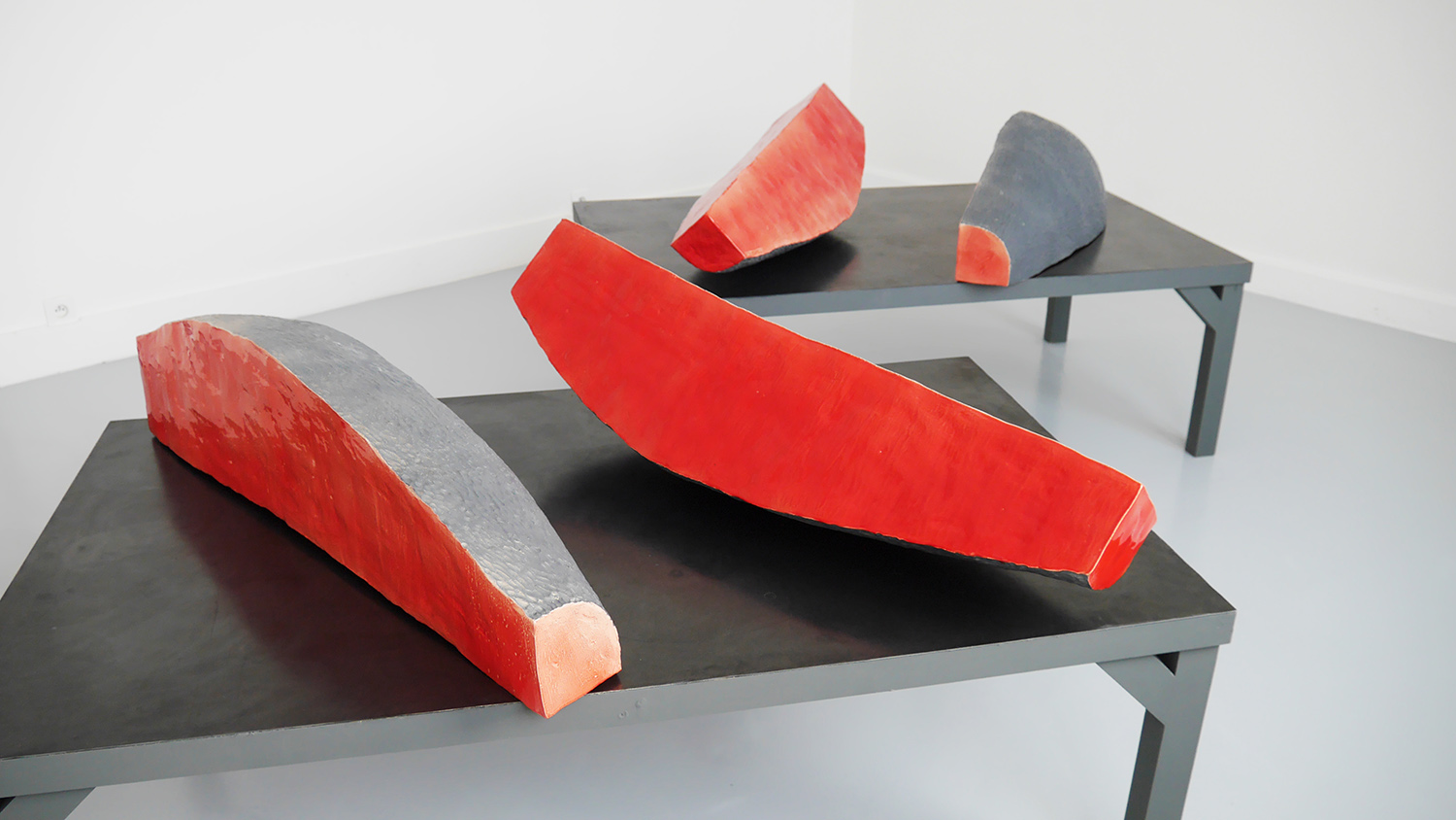 La table offre, quant à elle, une double lecture. D’une part, elle fait référence aux banquets et à la nourriture découpée pour être ensuite dégustée et partagée. Elle peut aussi évoquer l’idée de la table chirurgicale de dissection.